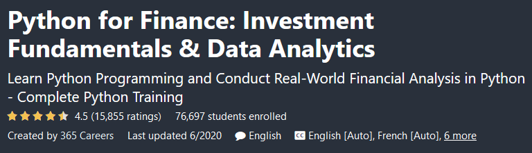 Technical course, Python for Finance: Investment Fundamentals & Data Analytics :