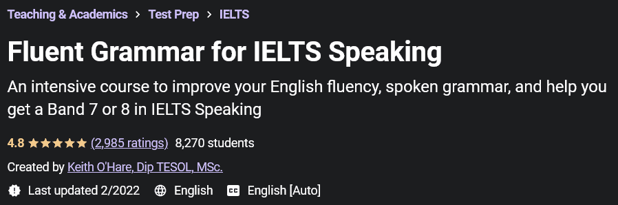 Fluent Grammar for IELTS Speaking是Udemy Academy推出的雅思口语语法培训课程。本课程是一个提高口语能力和实用语法训练的训练集,可以向您介绍句子结构和与英语母语者交流的结构结构。通过认真学习和练习,参与者的口语测试可以得到7或8分。一个学习者可能有很好的词汇量,但可能由于语法和语法问题以及无法造句而无法说好。说话时过度推理以及难以找到单词和定义适当的短语是您的语法和语法无法验证的一些迹象。本课程在语法教学上采取了完全不同的课程,足以教授口语中的实用和应用要点。