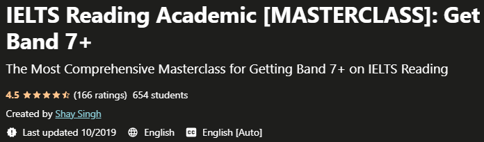 IELTS Reading Academic [MASTERCLASS]:获得 Band 7 Plus,这是一个针对 IELTS Academic 阅读考试的综合培训课程,并在其中获得 7 至高分。本课程是网站上最完整的课程之一,Udemy 被认为是为了解如何在阅读雅思考试中获得高分而设计的。由于本课程包含的示例、练习和许多问题,不能作为学习和掌握雅思考试的快速记忆方法。但是,如果您正在寻找全面的、充满示例、练习、策略和技术的教程,那么本教程将非常适合您。