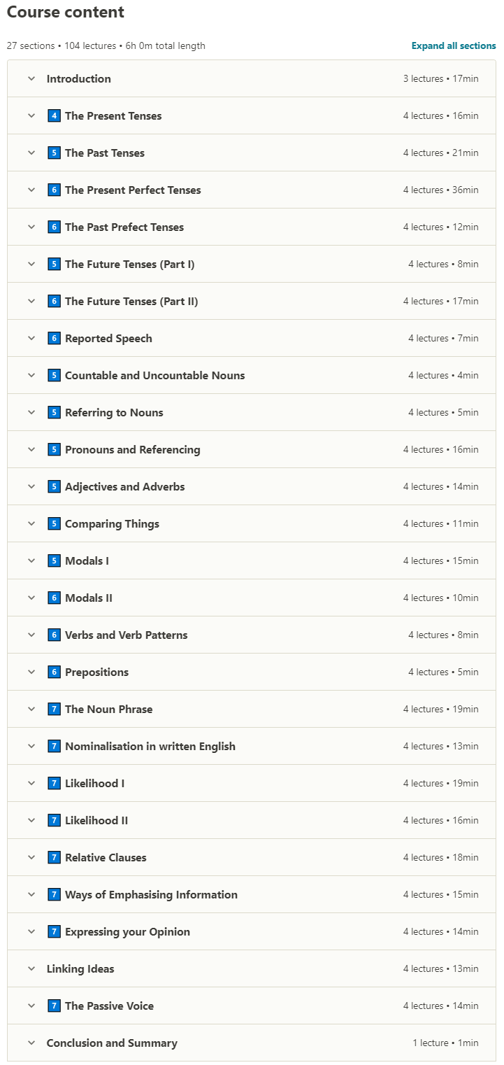 雅思循序渐进 | Mastering Grammar,一门培训课程的名称,雅思考试所需的语法,分数高于7分即可。本课程旨在加强语法以达到雅思考试的水平而设计。我们看一下 25 个区域,不同的语法,我们在每个部分都包含一个视频。与内容相关的家庭作业,以及至少 4 Practice 水平的练习,雅思,其中使用问题语法的技巧如下。你还有一本PDF小书谁在这期间收到的,所有的语法规律,你都会陪伴。该公司表示,该课程面向需要参加雅思考试的人。