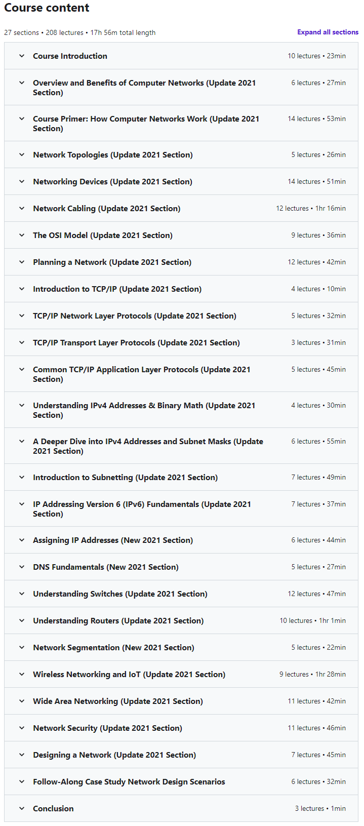 您还将学习有关如何在计算机网络、网络拓扑、设备和网络布线、OSI 和 TCP/IP 模型、IP 寻址、交换机和路由器、网络安全以及所有课程中工作的所有概念。 ,规划流程和网络设计等等。本课程适合任何有兴趣学习新计算机网络的人。