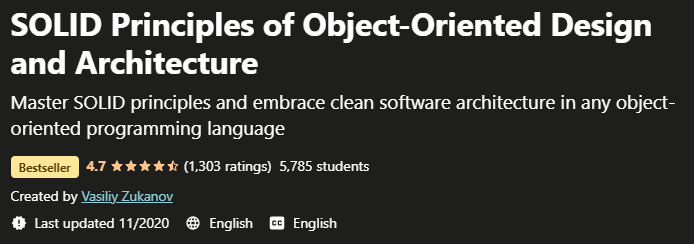 SOLID Principles of Object-Oriented Design and Architecture,一门教授 SOLID 和软件架构原则的课程,可用于任何面向对象的编程语言行业。在本课程中,您将了解 SOLID 技能的原则,这些原则对软件系统设计的重要性和保留漏洞的重要性。 SOLID 的原则可以为您在新的世界中打开软件宏伟的架构,从而所有开发人员都可以从中受益。