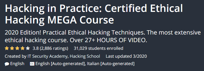 Hacking in Practice:Intensive Ethical Hacking MEGA Course,网络和安全领域的培训视频系列的名称以及分支黑客。如您所知,世界各地存在不同目标的……黑客。在此期间讨论的是一种黑客类型,而不是黑客道德。您观看了有关道德黑客所需技能的课程,您会有所收获。本期提供的培训,视频不知何故是你如何实施技术,实用高效,Ethical Hacking,学习。
