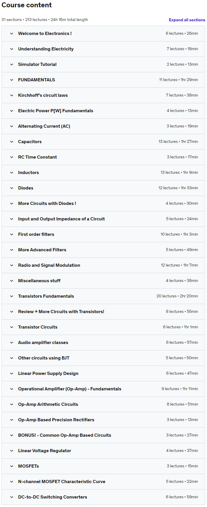 The Complete Electronics Course 2022: Analog Hardware Design 学习内容: