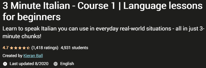 简介 Udemy – 3 分钟意大利语 – 课程 1-7 |初学者语言课程