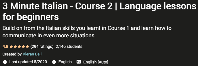 Udemy – 3 分钟意大利语 – 课程 1-7 |面向初学者的语言课程,由 7 部分组成的意大利语课程是一个 3 分钟的课程。本教程将意大利语分成更小的部分,检查每一个部分,然后教授如何将它们重新连接起来。如果不熟悉该语言,您也没有异议,因为本教程很快,使您能够造句、创建自己的句子并轻松地从该语言到您的日常使用。每节课大约需要 3 分钟,在此期间,您将学习意大利语的一小部分。你去的部分越多,你可以构建的句子就越长。另外,每一节的内容在其他节中都有重复,不需要全部记住。