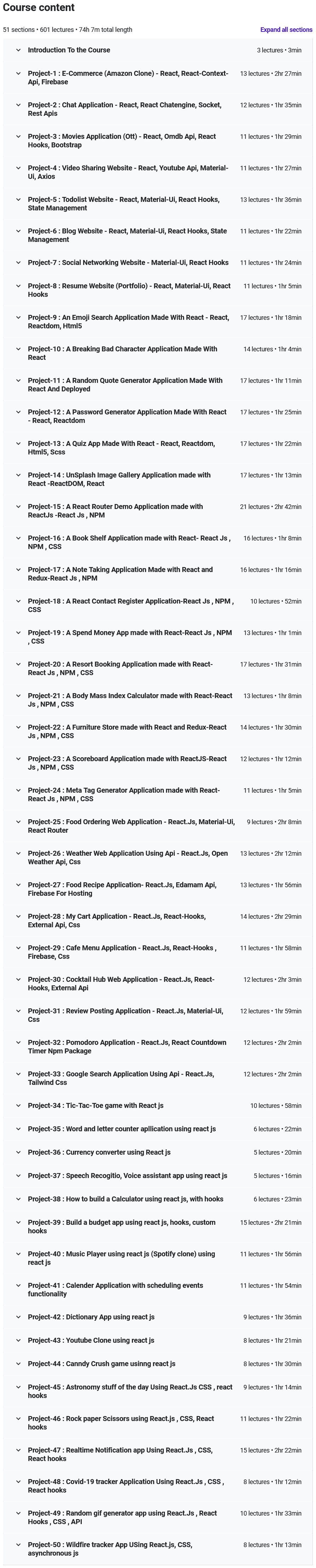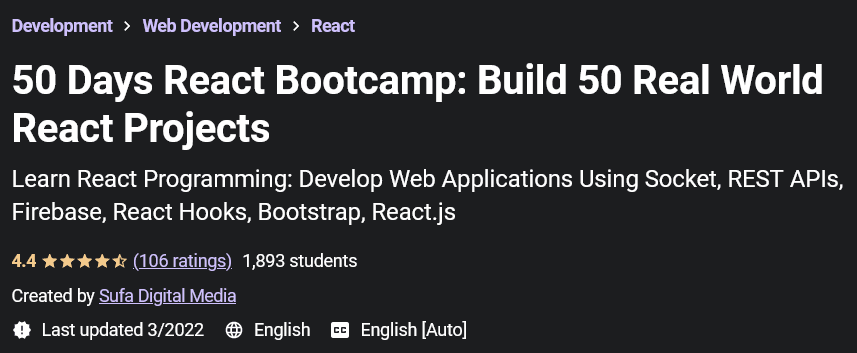 50 Days React Bootcamp: Build 50 Real World React Projects 是由 Udemy Academy 发布的为期 50 天的 React Framework 基于项目的培训课程。该培训课程是Yodmi网站在网站设计和Web应用程序用户端开发领域最全面的课程之一。除了 React 框架,其他技术如 web sockets,REST API,Firebase,React Hooks,它也教授 bootstrap 等。 React 是 Web 应用程序最流行的用户应用程序开发框架之一,它使用语法编程方法而不是通知编程,并且在这方面使开发过程非常快速和流畅。尽管有 React,人为错误和错误在项目中的作用已经减弱,用户可以在尽可能快的时间内将应用程序从零开发到一百。
