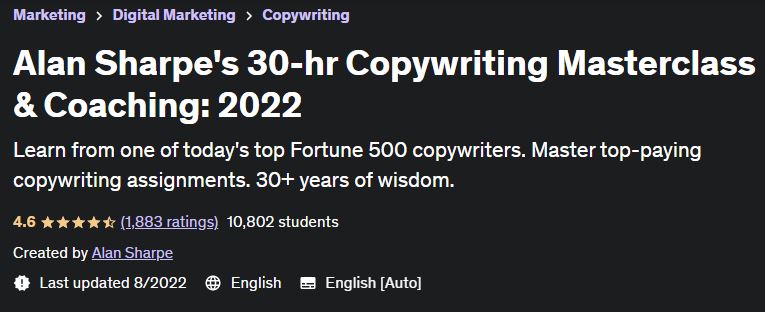 先修课程 Alan Sharpe 的 30 小时文案写作大师班和辅导:2022 年: