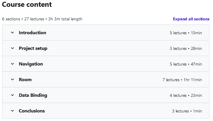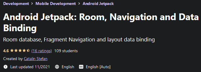 Android Jetpack:Room、Navigation 和 Data Binding 视频教程来自 Udemy 网站的 Android Jet pack。在本课程中,您将学习如何使用 Jetpack Room、导航和数据绑定。大部分关于库的在线教程都会讲,但是教你如何使它们实用,你不会。在实际实施方案中的 3 个库的过程中,我们将。这个应用程序是一个笔记应用程序,它在本地数据库存储中。我们的数据是从本地数据库创建的,他们可以读取,到我们删除的那一天。导航(Navigation)应用程序使用Android 运行的新库导航。最后,我们的数据与库 Data、Binding、display 和…的使用。