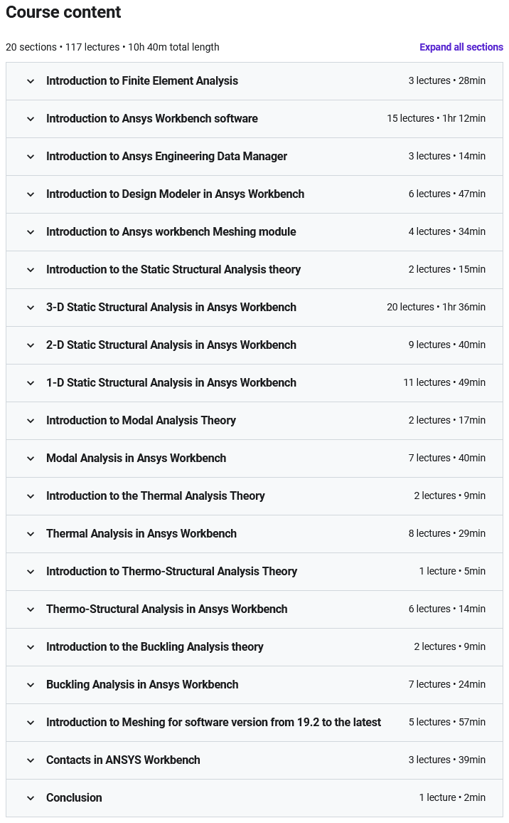 ANSYS 培训:应用程序简单介绍是一门面向项目的培训课程,用于使用 Ansys Workbench 软件平台解决各种工程挑战,由 Udemy Academy 发布。 Ansys Workbench 是一套用于各个行业、大学和培训中心的有限元分析 (FEA) 软件,用于解决各种工程挑战。该软件专为多种用途而设计,不同的行业和工程学科可以同样受益于其功能和优势。该软件可以以完全虚拟的方式模拟不同条件和变量下的原型、原型和一般各种工程解决方案,并向工程师和开发团队提供项目概览。