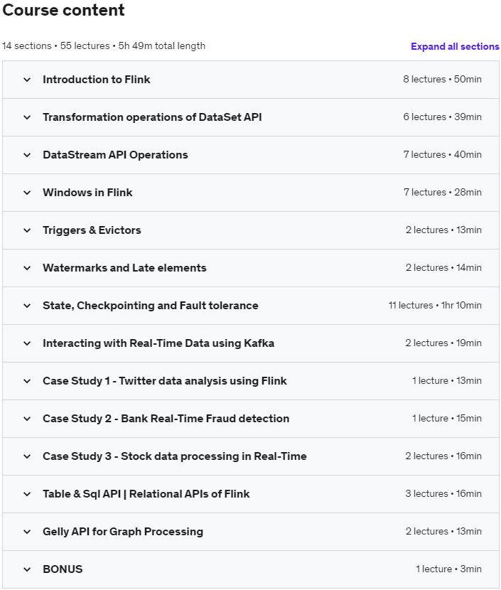 - 讲座中使用的数据集和 Flink 代码可在“资源”选项卡中找到。