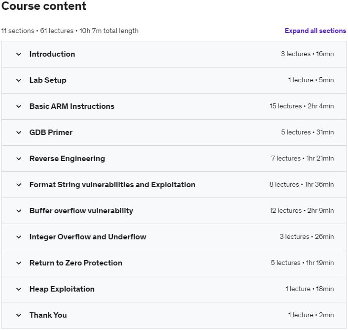 您将在 ARM 课程的逆向工程和漏洞利用开发中学到什么: