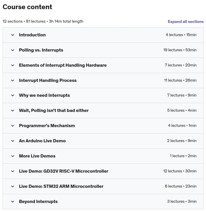 所以这不完全是一门实践课程,如果你不希望它是这样的话。您将进行的项目没有任何承诺,因为我们不会强迫您构建您没有选择的项目。但是,我们强烈建议您一起编码。展示了几个微控制器开发平台,但您应该使用自己的微控制器来遵循这些示例。掌握这些知识后,我们希望您在未来设计嵌入式应用程序时能有不同的想法。通过将此技术添加到您的技巧包中,您将更接近于像专业人士一样制作嵌入式应用程序,并且希望您不会觉得自己像个初学者。