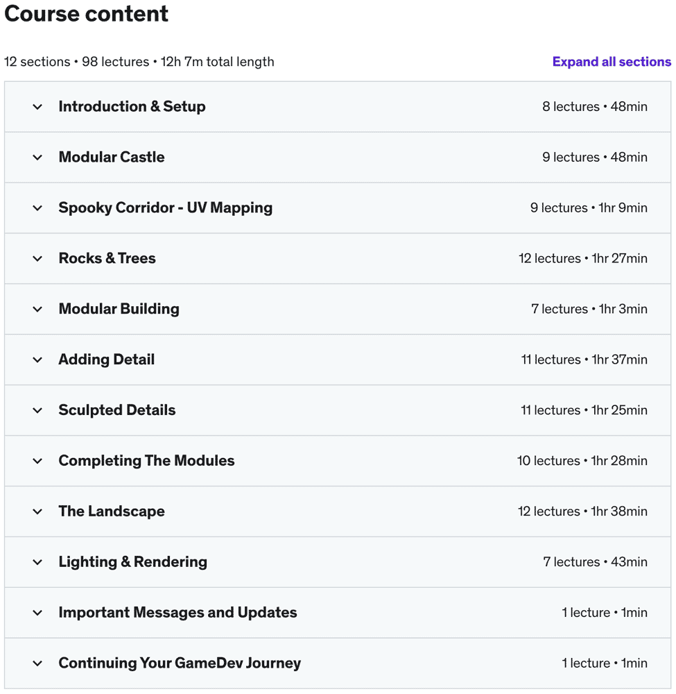 在本培训课程中设计的所有项目和资产都是可重复使用的,用户可以轻松地在虚幻和 Unity 等游戏引擎中使用它们。环境设计师必须精通设计的各个方面,例如初始和最终建模、塑造和雕刻、纹理、照明、渲染等。