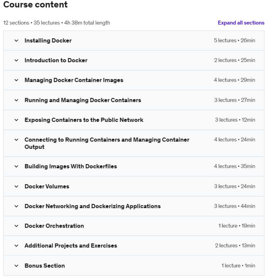 在本课程中,您将学习如何在 Windows、Mac 和 Linux 上安装 Docker、管理 Docker 容器、掌握 Docker 命令、使用现有 Docker 镜像或创建您自己的 Docker 镜像、输出和生产报告。查看和管理容器以及您可以使用 Docker 执行的许多其他操作。如果您想将 Docker 添加到您的技能列表中,请立即开始学习本课程。