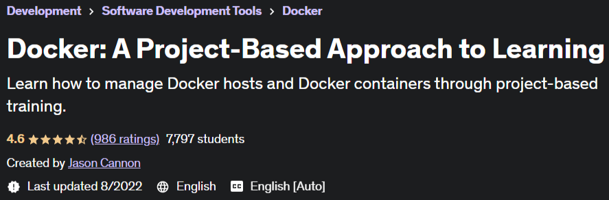 Docker:基于项目的学习方法是 Udemy Academy 的基于项目的 Docker 课程。学习 Docker 对于当今的软件开发人员来说非常重要,因为没有结构很难学习,收集有关它的信息也很无聊;推荐观看本课程,轻松掌握Docker。这门课程不像其他课程那样提供大量信息而没有任何背景知识,也不解释如何用好它。本课程以项目为基础,您将在真实环境中学习实用的 Docker 命令,而不是学习零碎的信息,这样您就可以立即应用所学知识。