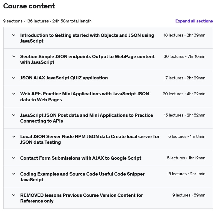 您将在 JavaScript 动态网页 AJAX 30 项目 API JSON 课程中学到什么: