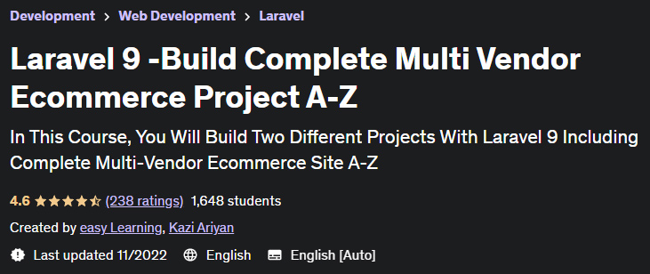 Laravel 9 – 构建由 Udemy Academy 发布的完整多供应商电子商务项目 AZ。在本课程中,您将使用 Laravel 9 构建两个不同的项目,包括一个完整的 AZ 多供应商电子商务网站。