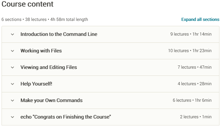 Linux Command line Basics是一门熟悉Linux命令行的课程。称为 Shell、终端和控制台的 Linux 命令行也称为环境,线性运行输入的命令是 Linux 发行版最重要的组件和应用程序。通过掌握这一部分,您可以更高效地使用 Linux 或提升您的职业生涯。