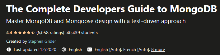MongoDB 完整开发人员指南是来自 Udemy 站点的教程,它以测试驱动的方式向您介绍 MongoDB 和 Mongoose 设计。 MongoDB 是当今科技界最具吸引力的数据库解决方案,涵盖从个人项目到企业基础设施管理的方方面面。本课程将帮助您快速了解 MongoDB,并获得了解和围绕 Mongo 构建软件所需的信息。