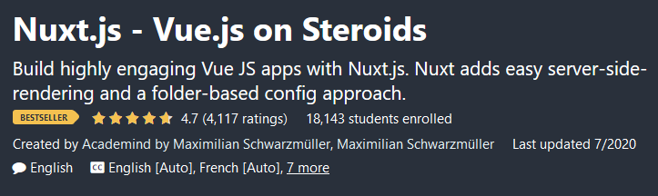 Profile of course Nuxt.js – Vue.js on Steroids; Nuxt.js 课程简介 – Vue.js on Steroids