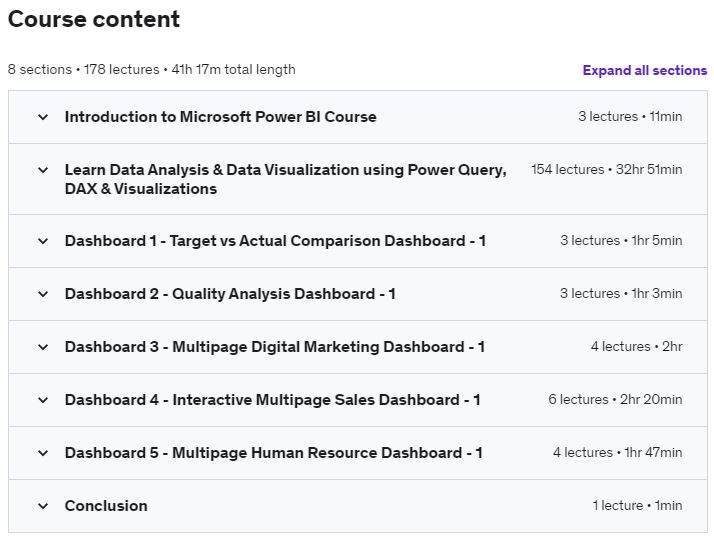 您将在 Power Bi – 通过 40 多个小时的高级内容课程掌握 Power Bi 中学到什么: