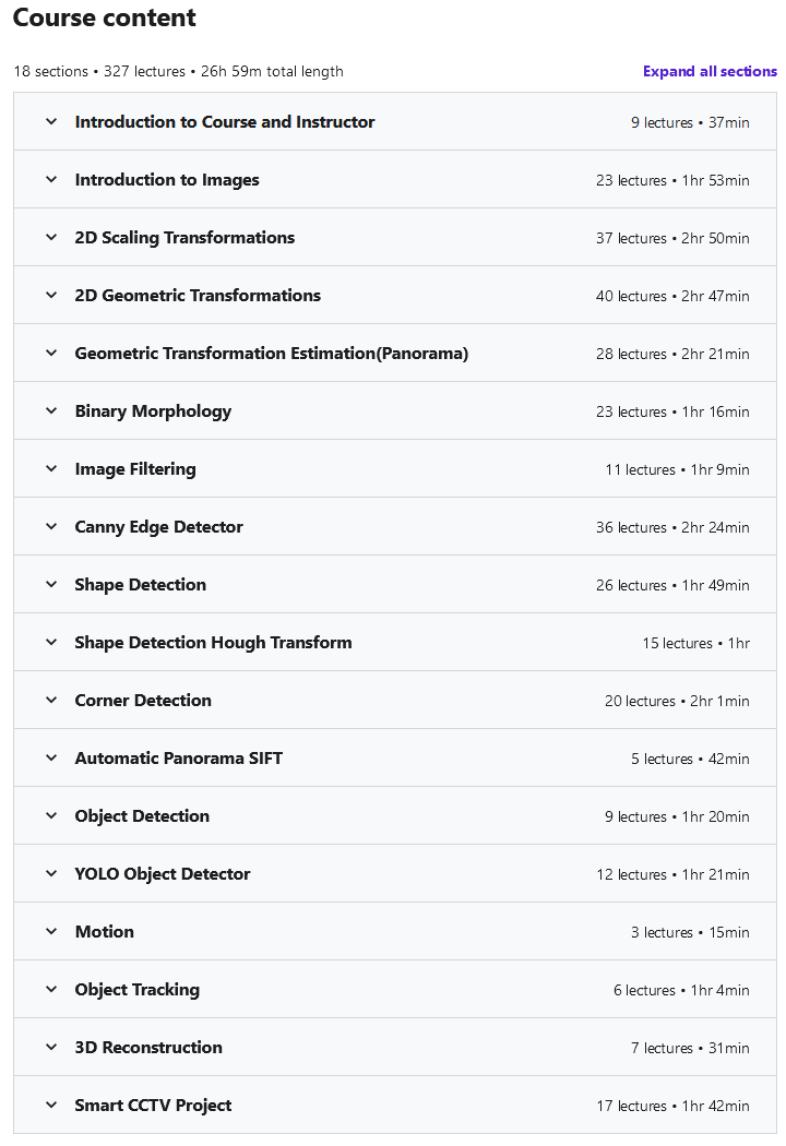 • 不需要先验知识。您将从基础开始,慢慢积累您在计算机视觉方面的知识。 • 愿意学习和实践。 • 了解Python 者优先。 • 由于我们通过实际实施进行教学,因此实践是必须的。