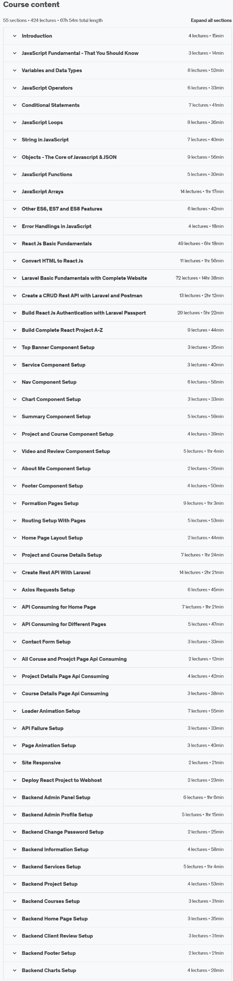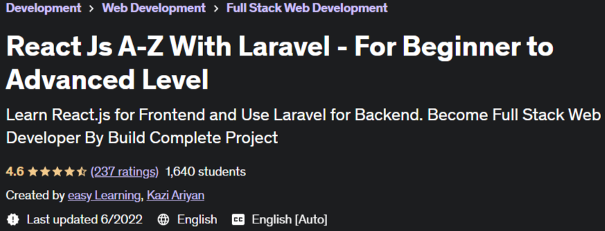 课程标题React Js AZ With Laravel – For Beginner to Advanced Level: