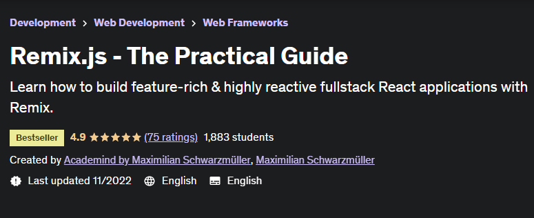 Remix.js – Udemy Academy 发布的实用指南。了解如何使用 Remix 构建功能丰富、响应迅速的 React 应用程序。