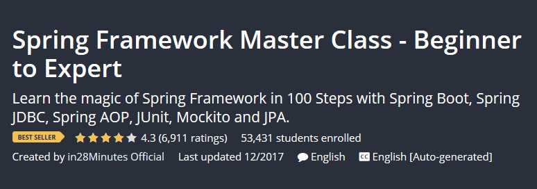 • This was one of the best courses I could find on Spring, Spring Boot and JPA. The steps are easy to follow, and almost all Spring training topics are taught in this course.