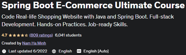 Spring Boot 电子商务终极课程是一门关于使用 Java Spring Boot、Thymeleaf、Bootstrap、jQuery 和 HTML 构建真正的在线 Web 商店应用程序的培训课程。通过完成本课程,您将获得丰富的实践编程经验,并成为一名专业的 Java Web 开发人员。