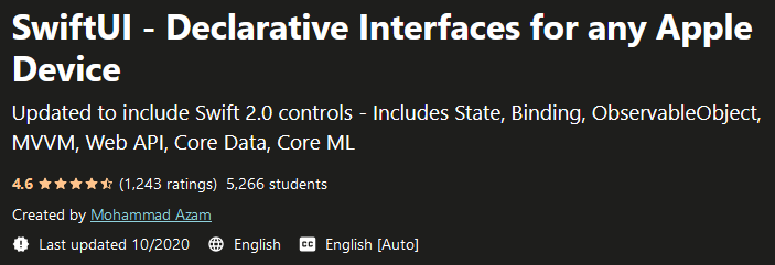 SwiftUI – 适用于任何 Apple 设备的声明式接口是 Udemy 网站上的培训课程,您将了解 SwiftUI 以及如何为熟悉的 iPad 设备构建用户界面。 SwiftUI 一项新技术并为各种平台构建强大的界面 Apple 正是利用 Swift 的强大功能为此受益。您可以使用工具集和 API,开始设计 Swift 简单的 Swift 界面布局,以编写干净整洁的代码以供使用。
