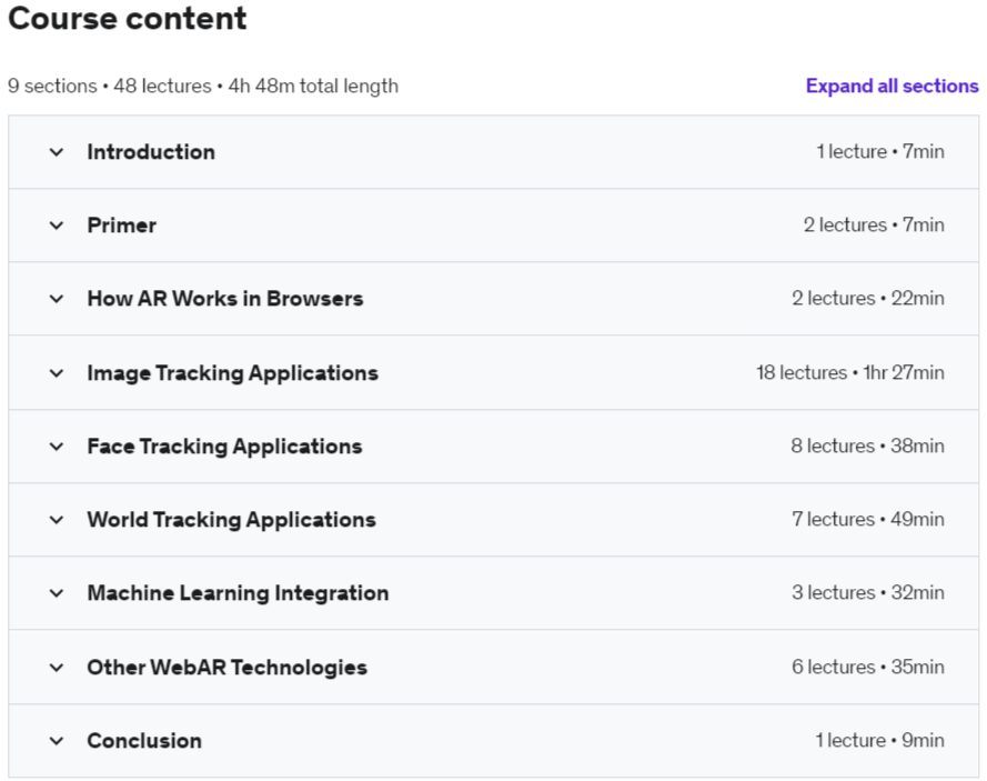 Web AR开发课程主题介绍: