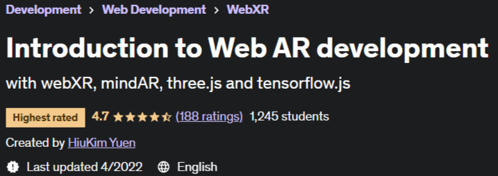 Web AR 开发简介是 Udem Academy 发布的网页增强现实 (AR) 培训课程。在本培训课程中,您将使用最流行的库进行工作,包括 webXR、mindAR、three.js 和 tensorflow.js,每个库都可以有单独的课程来学习。本课程是开发基于 Web 的增强现实应用程序的最全面指南之一。 Web AR 与其他的不同,它是跨平台的,不需要安装。您的项目只是在常规网络浏览器上运行的常规网页,您将学习实用的开发技能,以及 AR 如何在浏览器环境中工作的理论知识。