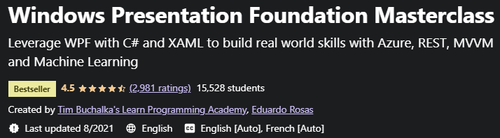 Windows Presentation Foundation Masterclass,代表网站 Udemy 的培训课程,教你如何使用#WPF、C 和 XAML 构建 Windows 应用程序。在本课程中,您将了解 WPF 如何构建使用该界面的应用程序是有吸引力和智能的。 WPF 是 Delphi 和 C++ Builder 的一部分。 net,它是将用户界面从逻辑、软件、编程模型中分离出来,为构建集成提供的技术。此子系统受益于 XAML 和 C#,并完全由 Microsoft 提供支持。