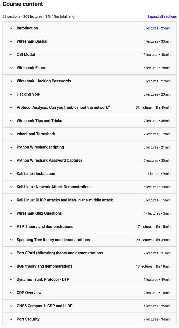 出版商:Udemy 讲师:David Bombal 语言:英语水平:初级课程数量:208 持续时间:14 小时 15 分钟