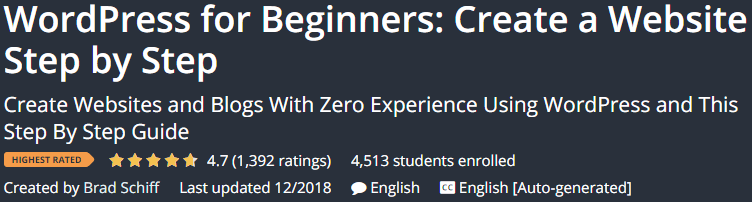 WordPress for Beginners: Create a Website Step by Step 是一门关于如何建立网站和博客的培训课程 WordPress 内容管理系统作为一步一步教你。本课程是为初学者制作的,代码没有在设计中使用。该课程不需要某些先决条件,您完全熟悉 WordPress 及其多种功能。您可以学习 WordPress 每个您想要专业设计和管理的网站。