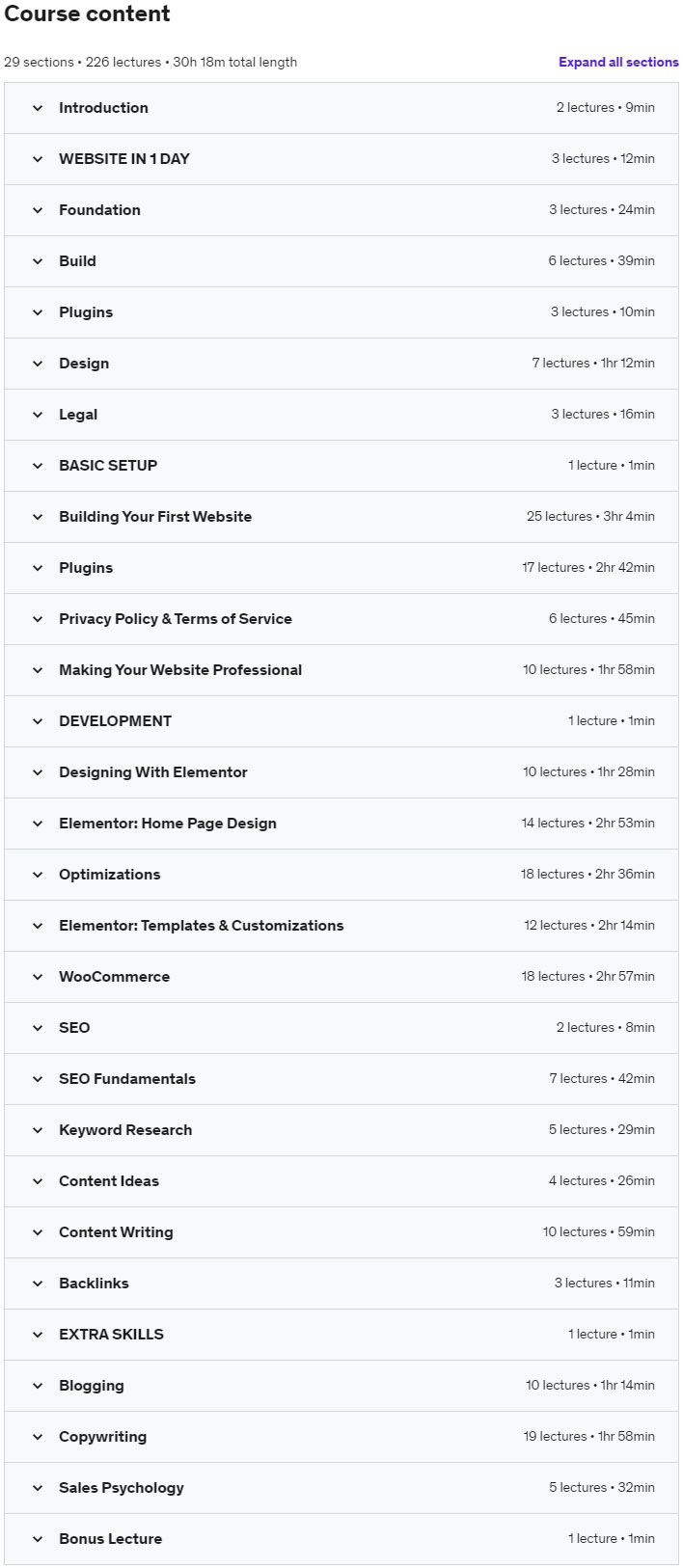 您将在 WordPress 网站开发和 SEO 大师班(无编码)课程中学到什么: